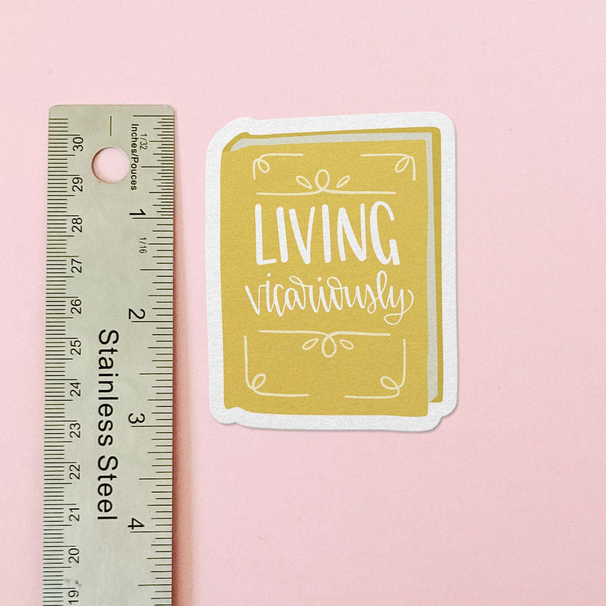 Dive into thrilling adventures from the comfort of your reading nook with our "Living Vicariously" vinyl sticker! Featuring a whimsical book illustration, it celebrates the magic of armchair exploration. Slap it on your laptop or water bottle to proudly proclaim your love for vicarious journeys. Let your personality shine through this fun, personalized touch, and show the world that you're an avid armchair adventurer! Whether it's fantasy realms or historical escapades, this sticker is a playful reminder of the incredible places you can visit with a good book. Get ready for literary wanderlust!