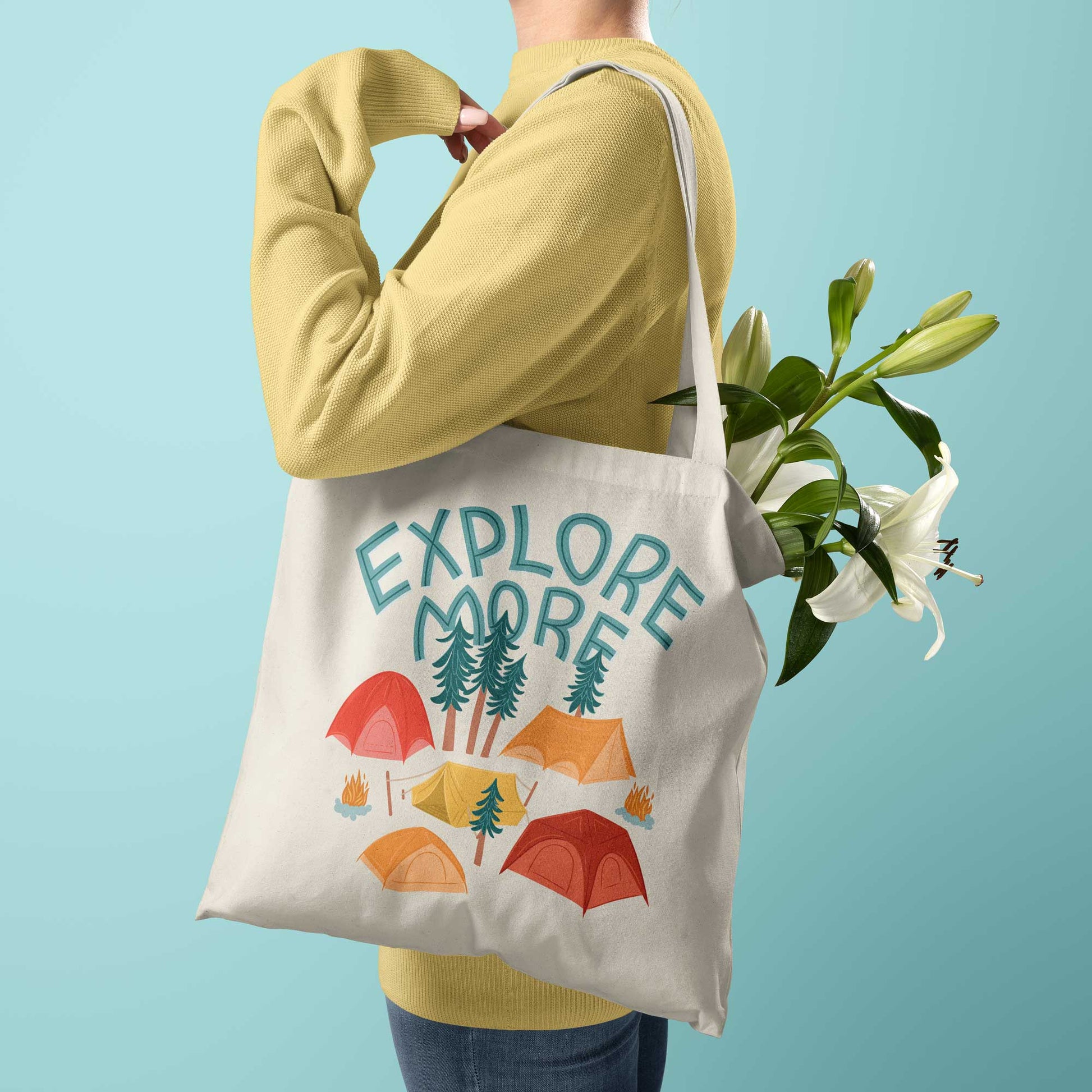 This adventurous cotton canvas tote bag is made for those who love to "Explore More!" With hand-drawn tents, forest scenes, and sturdy shoulder straps, it’s perfect for carrying your essentials on every journey. Whether you’re heading to the mountains, the woods, or a cozy campfire, this tote brings a dash of the outdoors to your daily adventures. Designed to make you smile and inspire wanderlust, it’s a wonderful gift for any camping or nature enthusiast!