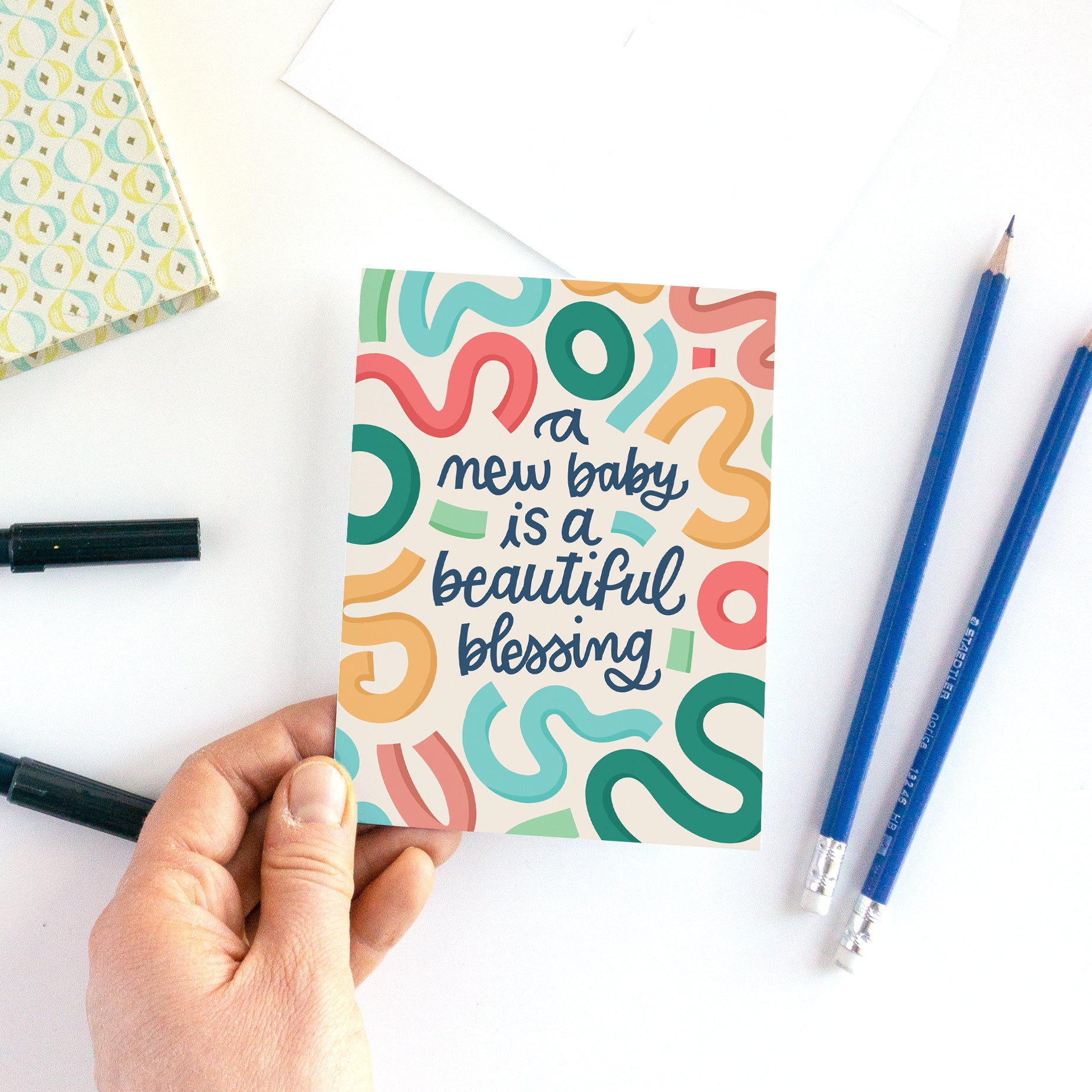 Celebrate a new arrival with this hand-drawn, modern baby card featuring the heartfelt message, “A Baby is a Beautiful Blessing.” Perfect for Christian and faith-based celebrations, it makes a thoughtful gift for new parents, adding a personal and meaningful touch to any baby shower or nursery keepsake. Its contemporary design combines charm with spirituality, making it a card they’ll treasure as much as their little one. Share joy, faith, and love with every note.