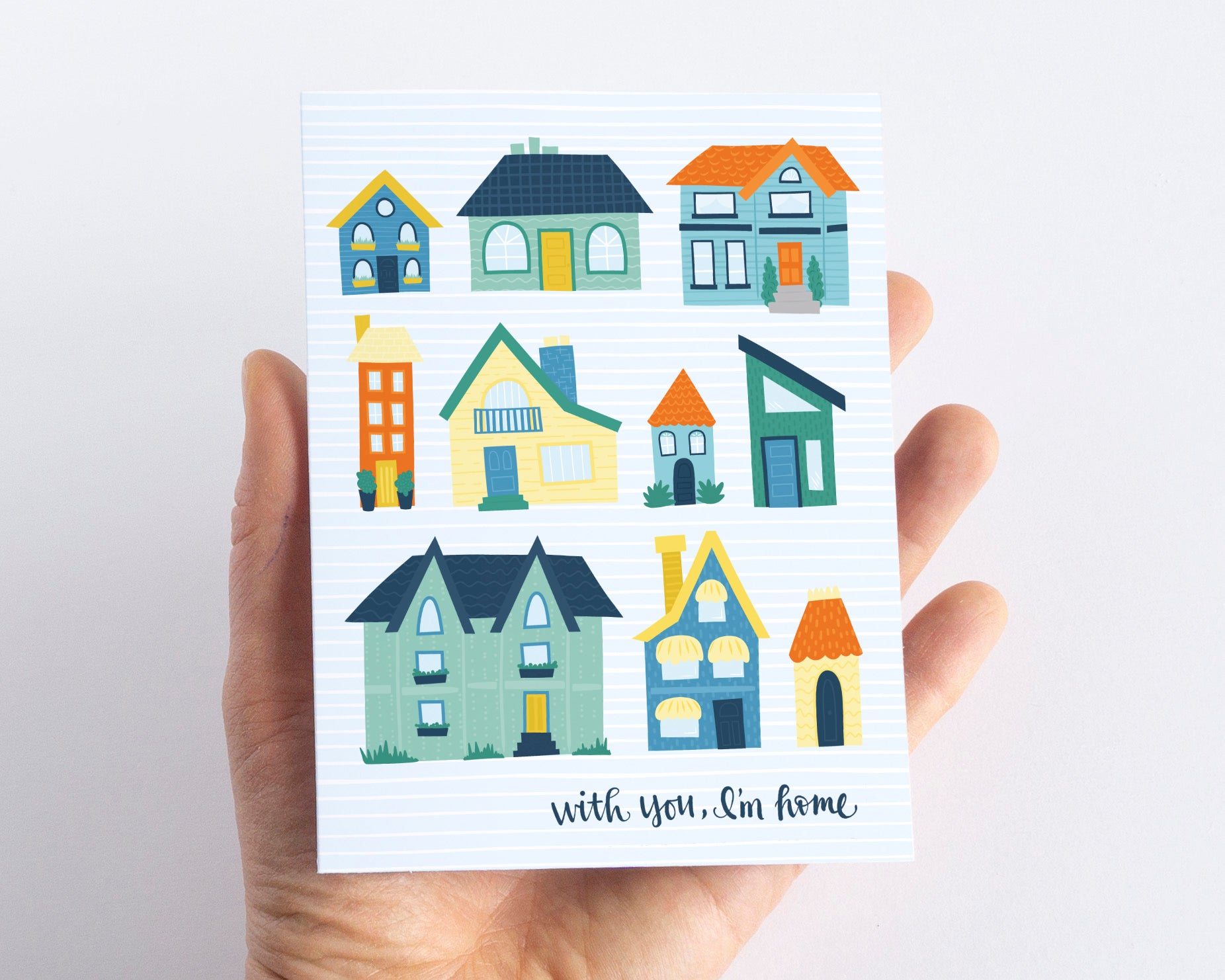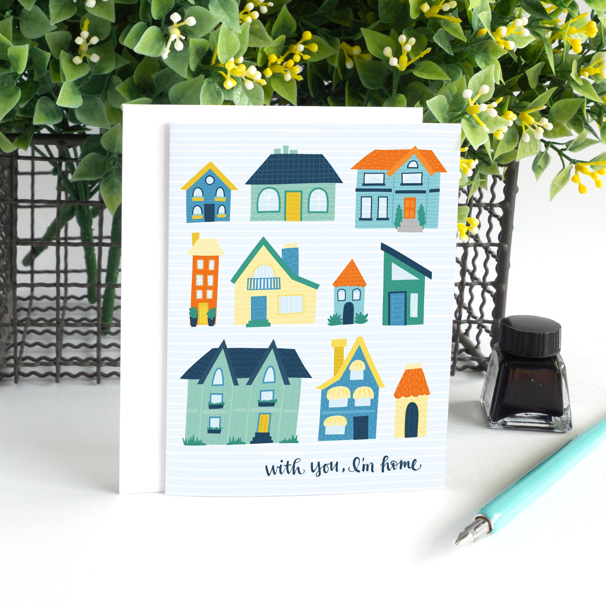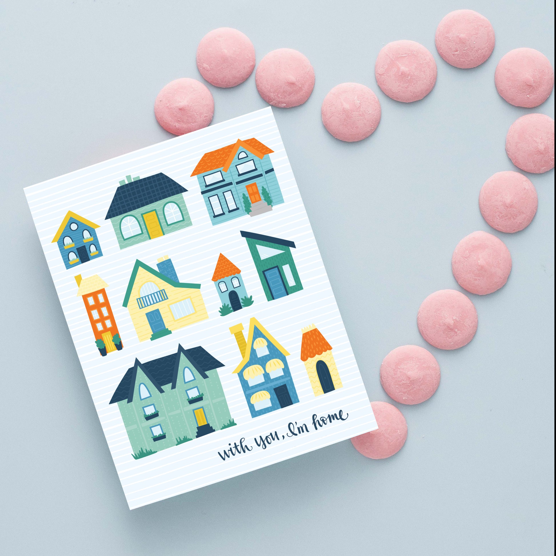 Celebrate the sweet feeling of being home wherever you are with our adorable love card. Illustrated with charming and unique houses, it beautifully conveys the idea that as long as you're together, you're home. Crafted with heartfelt sincerity, this card is perfect for expressing your deep love to your partner or spouse. Its message captures the essence of your bond, where love provides the warmth and comfort of home, no matter where life takes you. Embrace this sentiment and share your heartfelt message with our thoughtfully designed card, a reminder of the enduring love that makes every place feel like home.