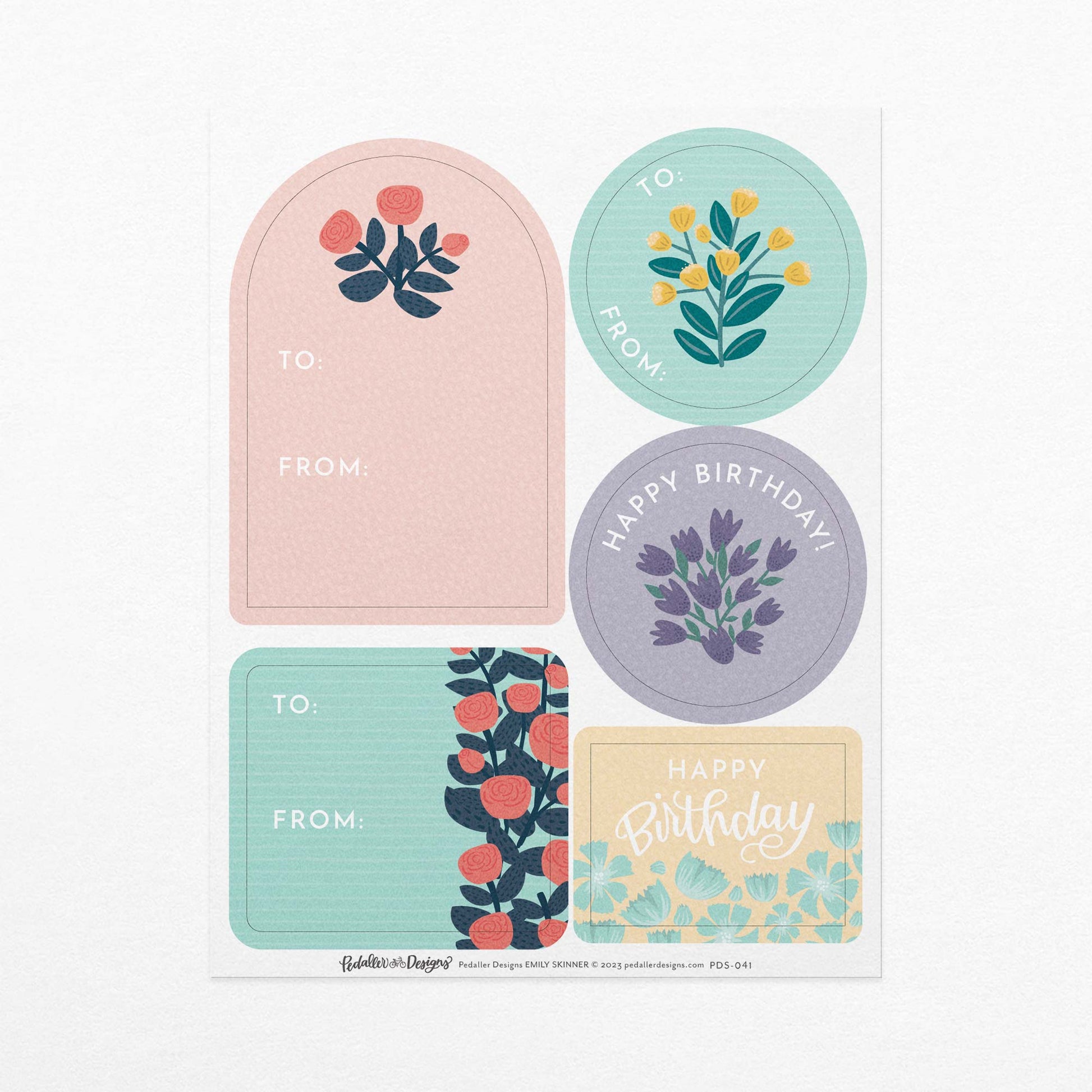 Floral Birthday Gift Tag Sticker Sheet Set