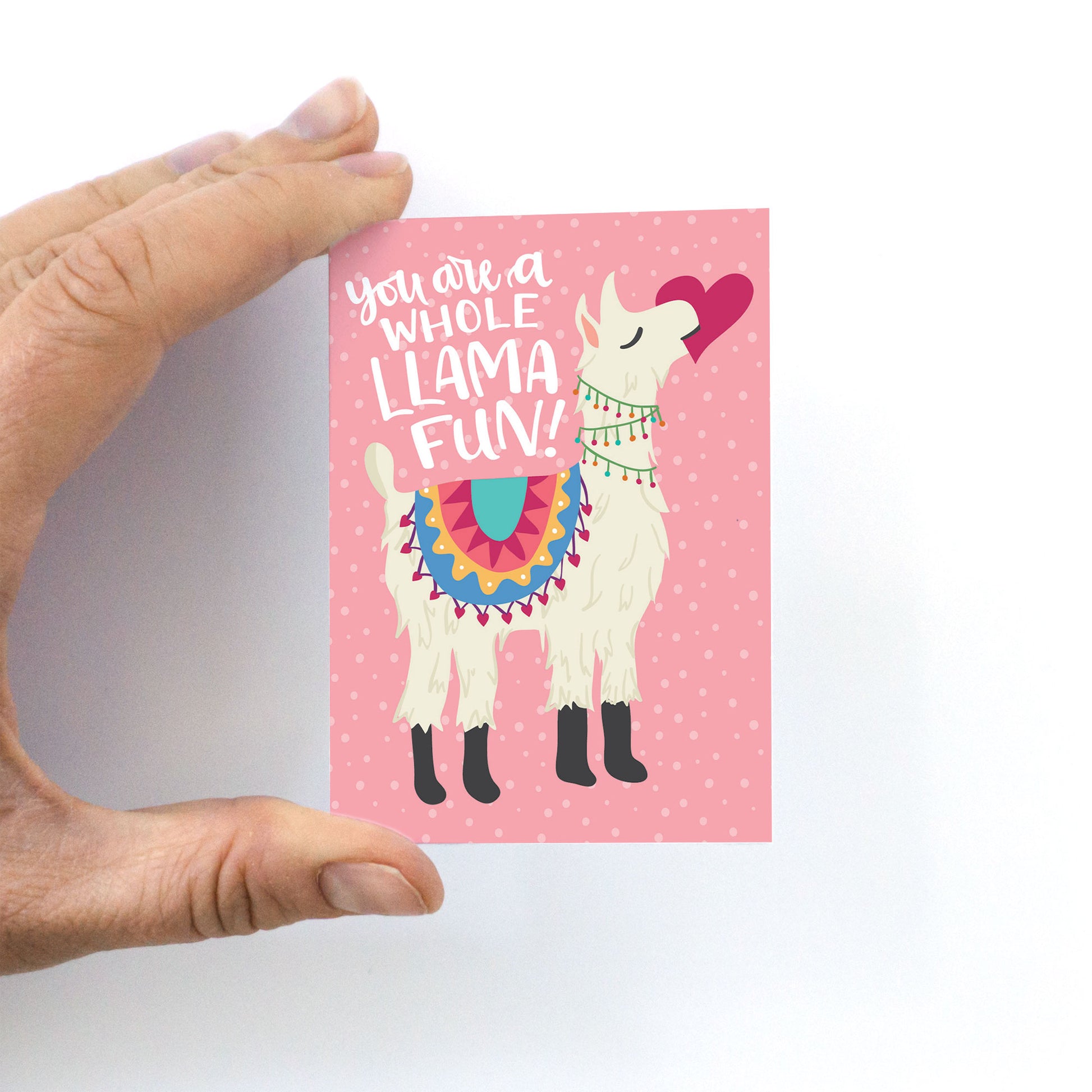 Make Valentine's Day in school a blast with our Children's Mini Valentine Set featuring a lovable llama! These six mini valentine cards are not only adorable but also filled with pun-tastic fun. Each card expresses how much joy and laughter your child's classmates bring, making it a delightful surprise for everyone. The set includes matching stickers for that extra touch of creativity. Share the love, laughter, and friendship with this charming llama-themed valentine set, guaranteed to make your child's classmates smile on this special day. It's a fantastic way to show appreciation for the fun they bring to school life.