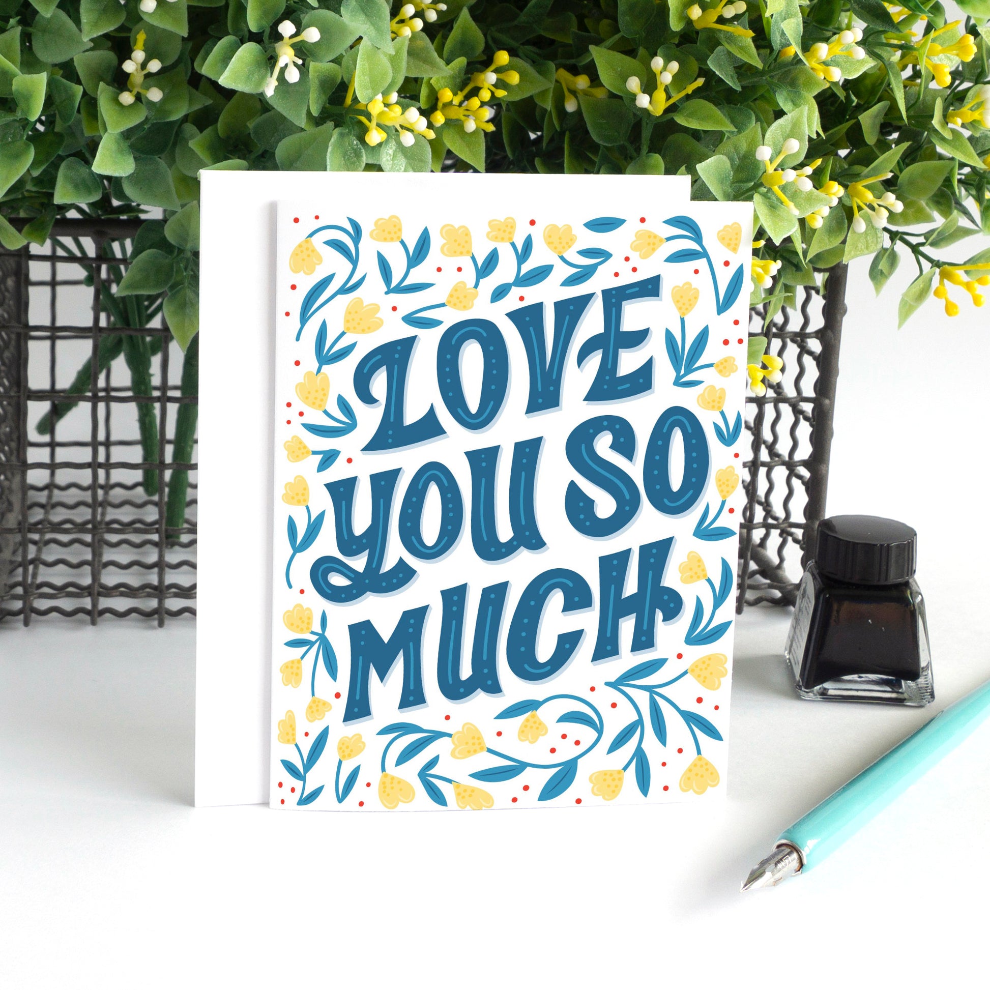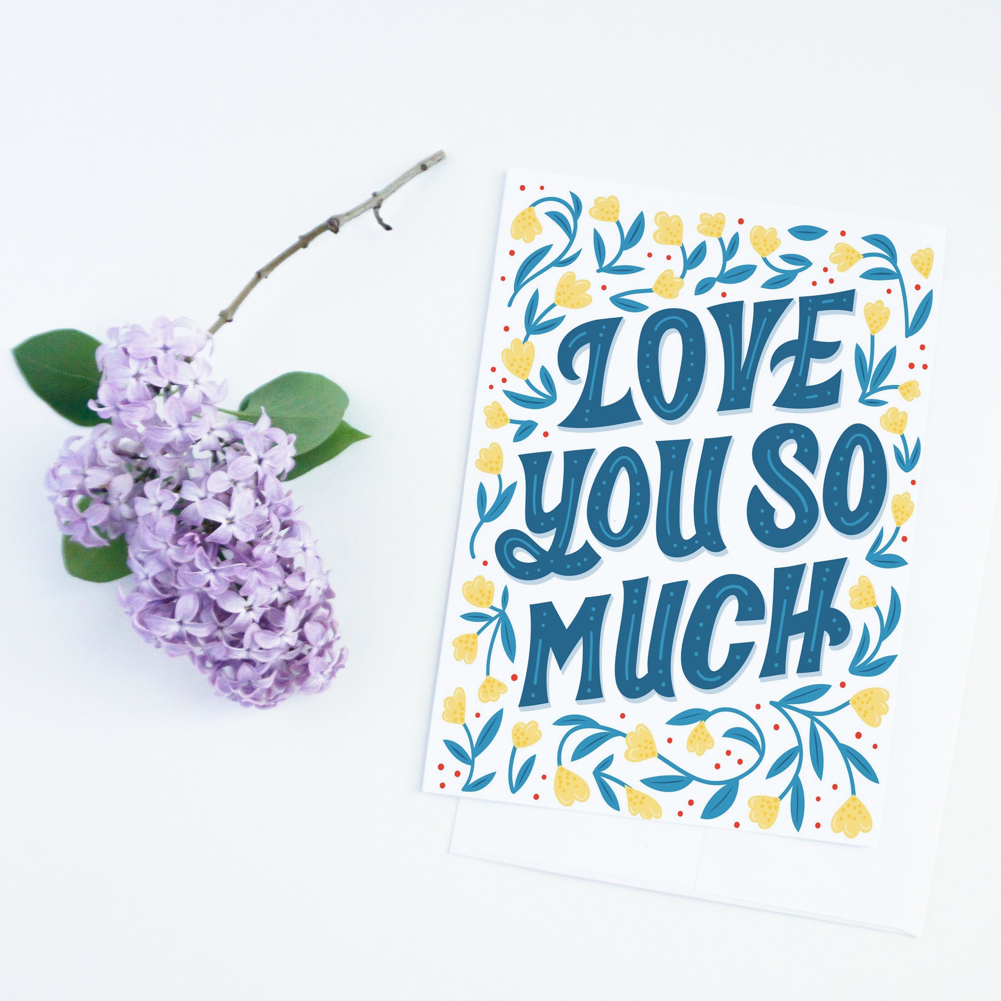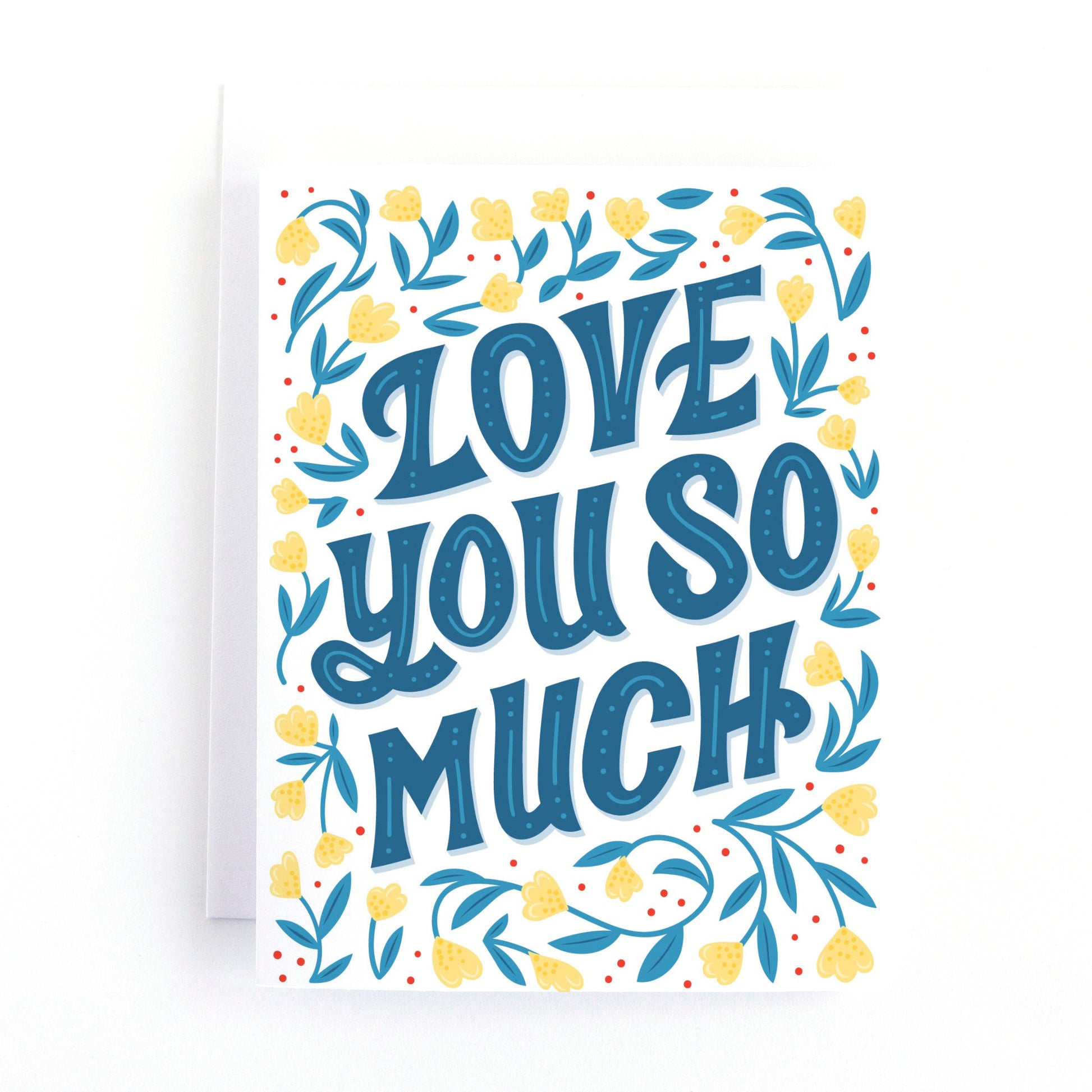 Celebrate your love with our charming Love You So Much Card! Vintage lettering surrounded by simple florals creates a delightful expression of affection, perfect for Valentine's Day or anniversaries. Show your appreciation to your special someone with this heartwarming card that captures the joy of being a couple. Whether it's a special occasion or just because, make every moment together a celebration of love. Let this card add a touch of sweetness to your romantic gestures!