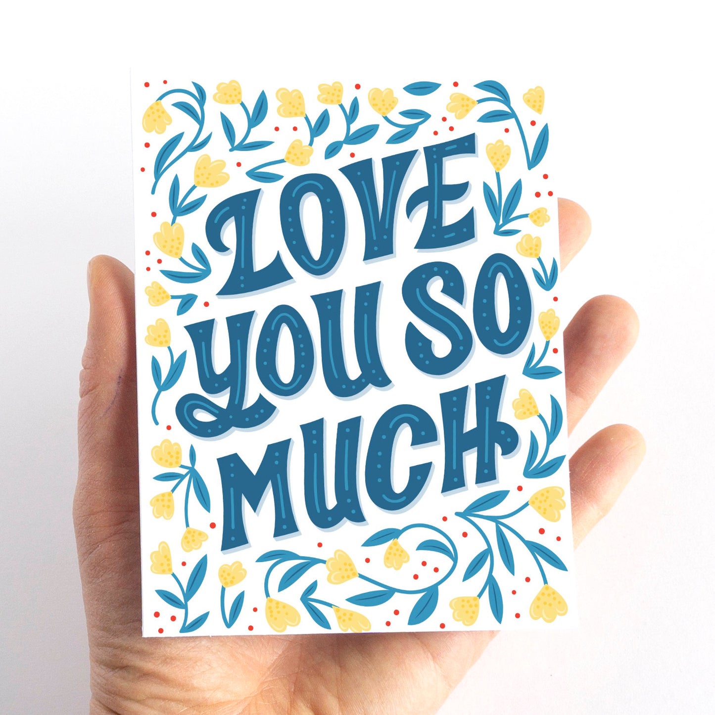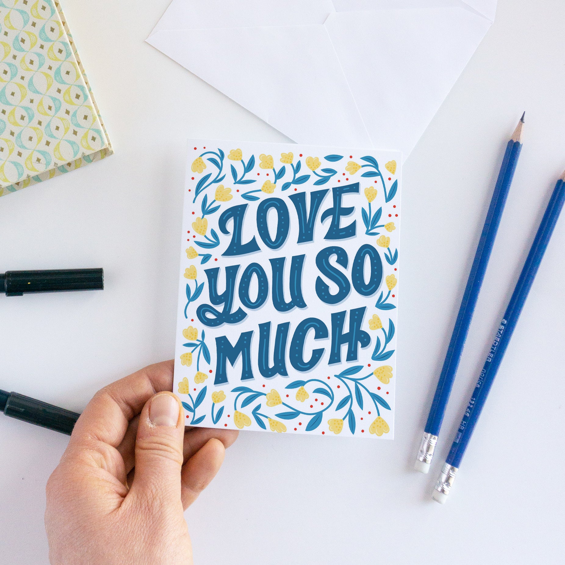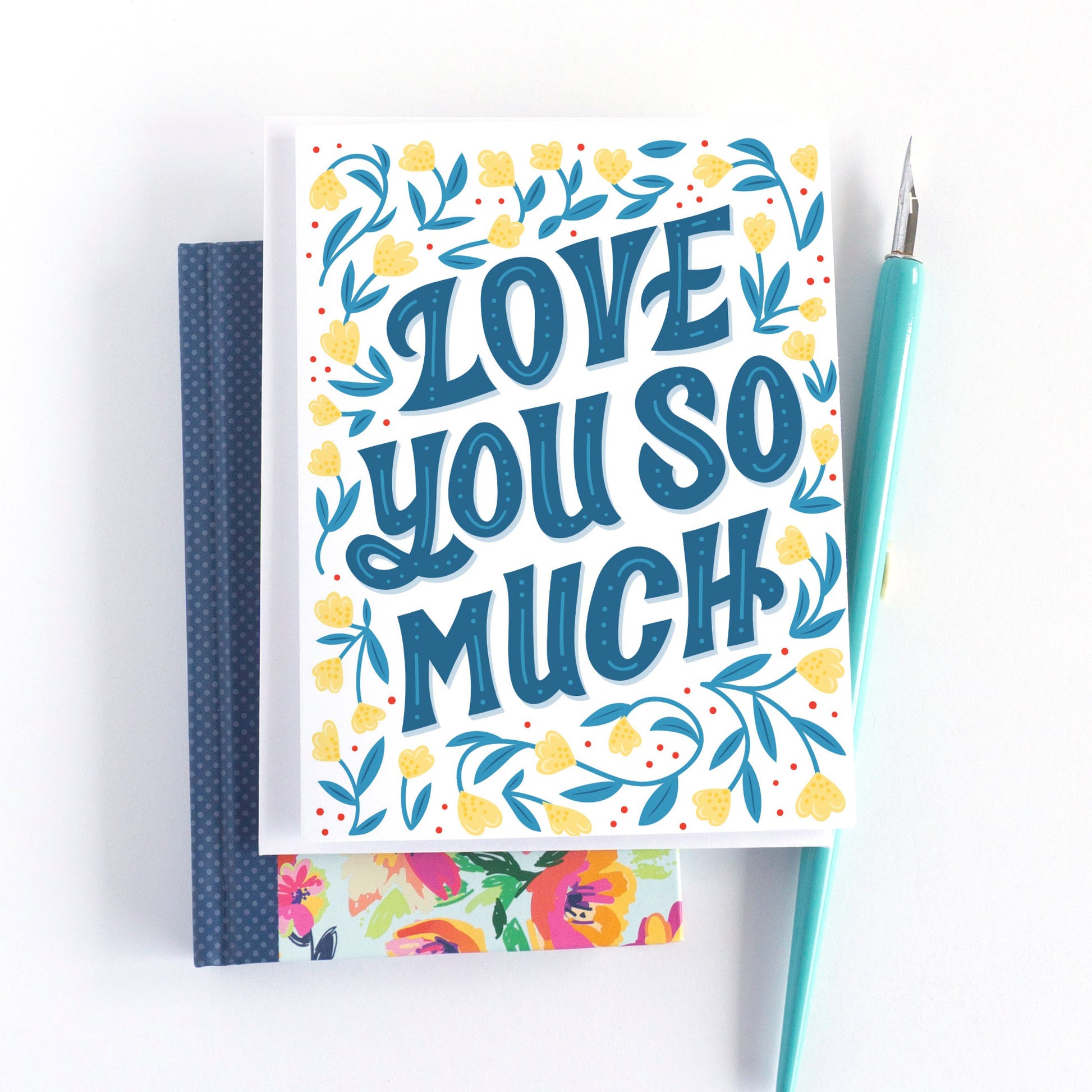 Celebrate your love with our charming Love You So Much Card! Vintage lettering surrounded by simple florals creates a delightful expression of affection, perfect for Valentine's Day or anniversaries. Show your appreciation to your special someone with this heartwarming card that captures the joy of being a couple. Whether it's a special occasion or just because, make every moment together a celebration of love. Let this card add a touch of sweetness to your romantic gestures!