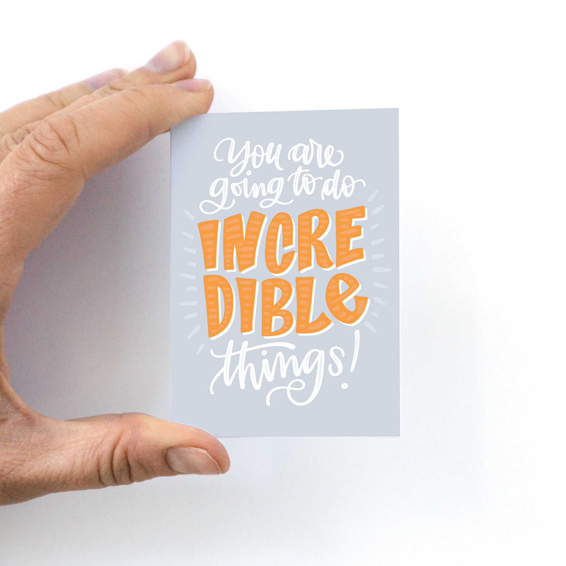 Introducing our Mini Graduation Inspiration Card! Adorned with playful hand lettering, it delivers a powerful message to the new graduate - they're destined to accomplish extraordinary feats in the world. Its petite size makes it a fitting addition to a thoughtful gift or a perfect fit for holding a gift card. This card serves as a beacon of motivation, celebrating their remarkable achievement and inspiring confidence in the exciting journey ahead. Whether they're stepping into a new career or embracing fresh challenges, this card is a token of encouragement they'll treasure. Elevate your gift-giving with this mini marvel, celebrating their bright future.