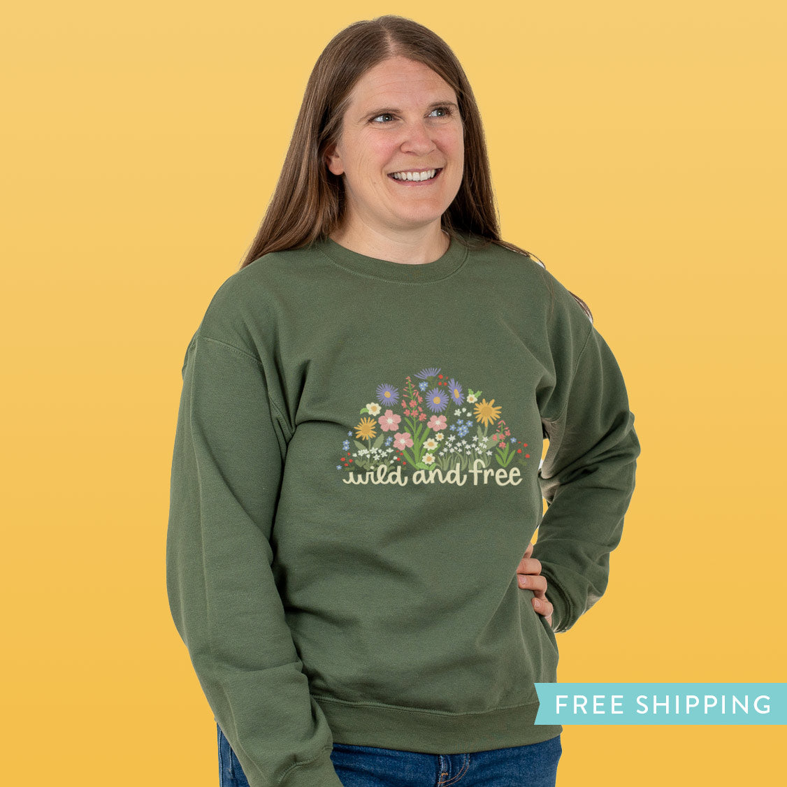 Women's Wild Flower Sweatshirt "Wild and Free" - Military Green