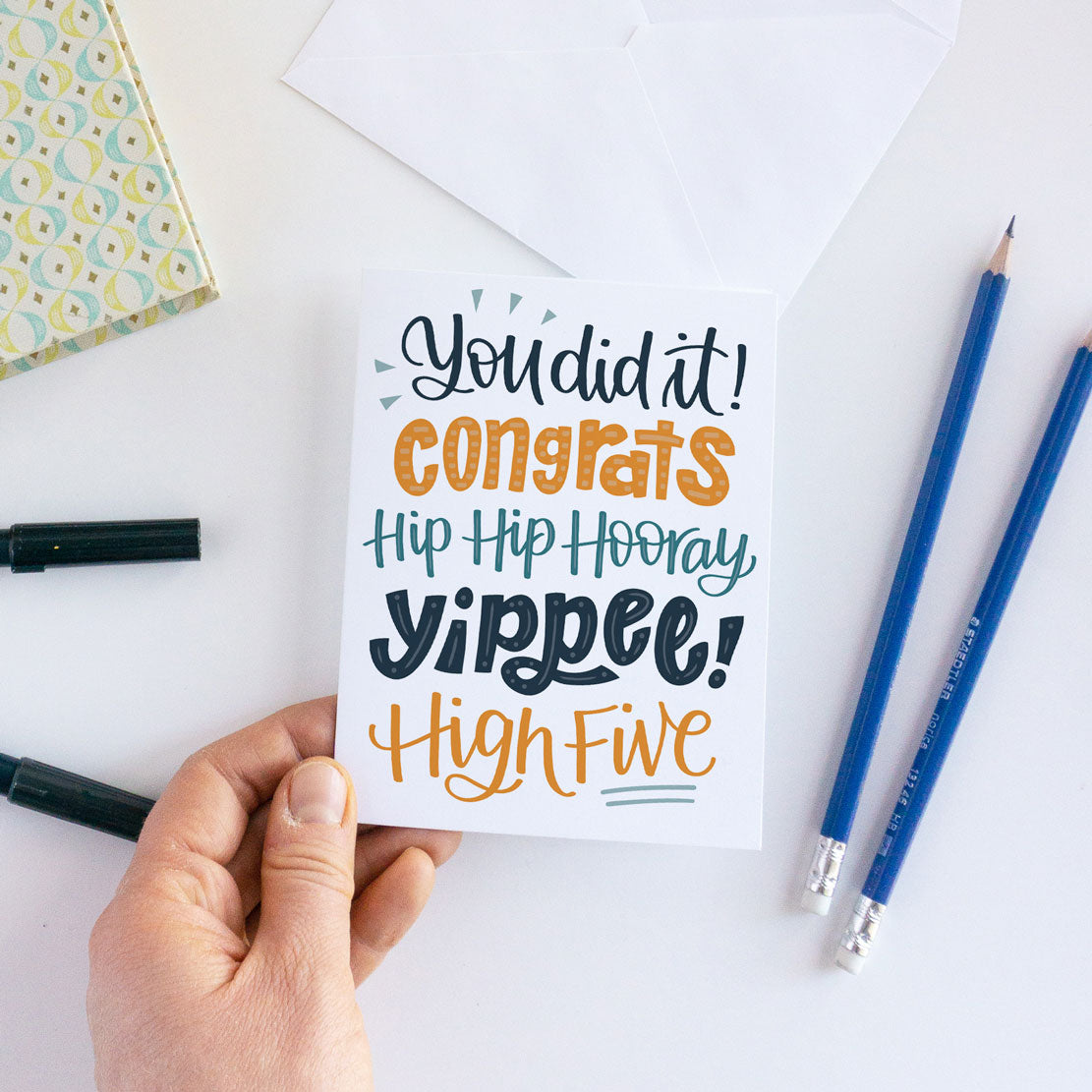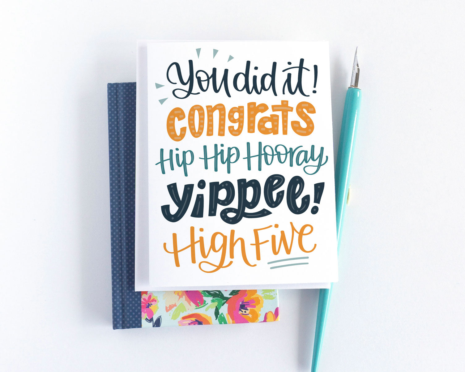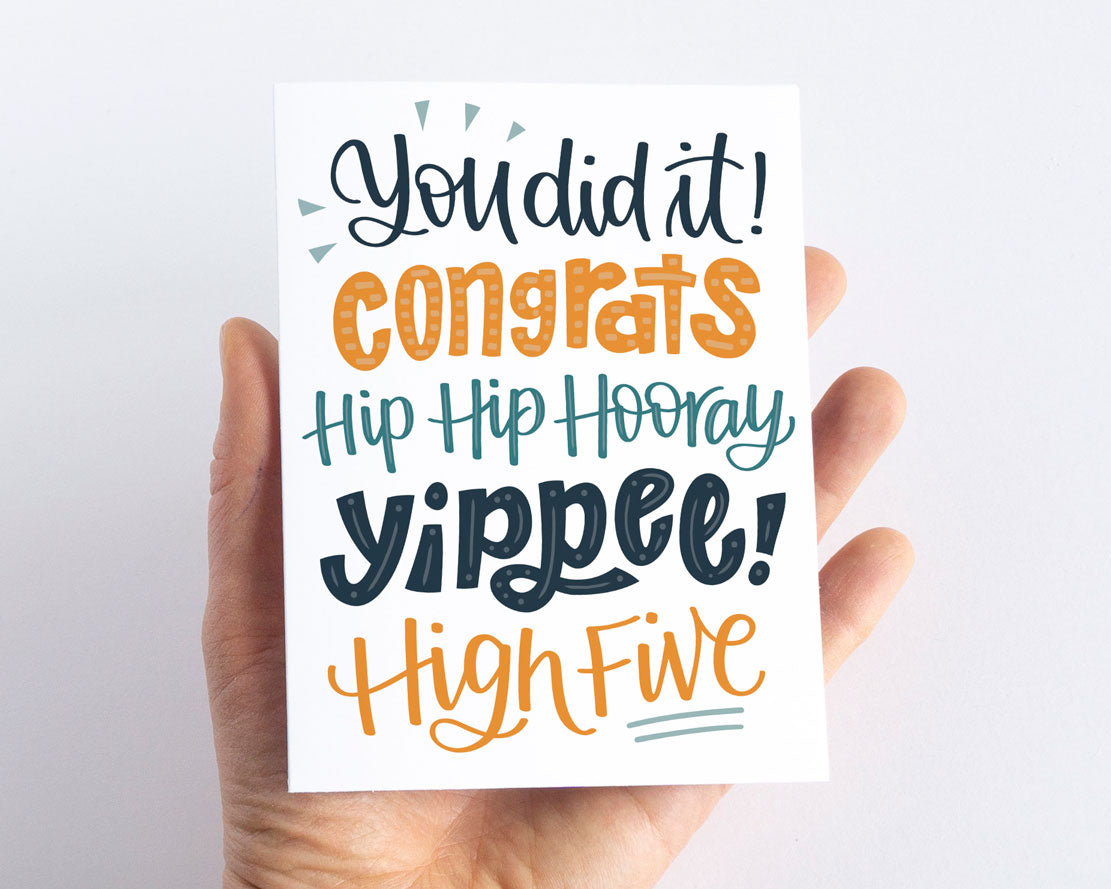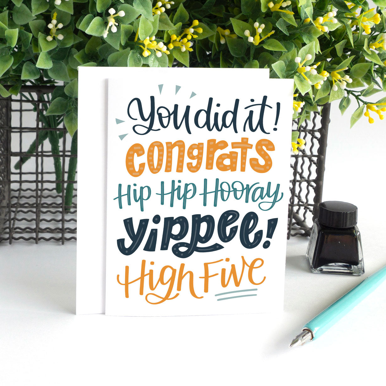 Celebrate your favorite new grad's massive achievement with our unique graduation card! With its bright colors and playful design, it's the perfect way to show them how proud you are of their accomplishment. So, whether you're sending it to your cousin or your bestie, this card is sure to put a smile on their face and make their graduation day even more special!
