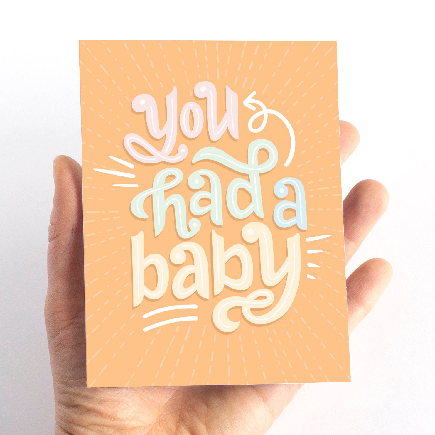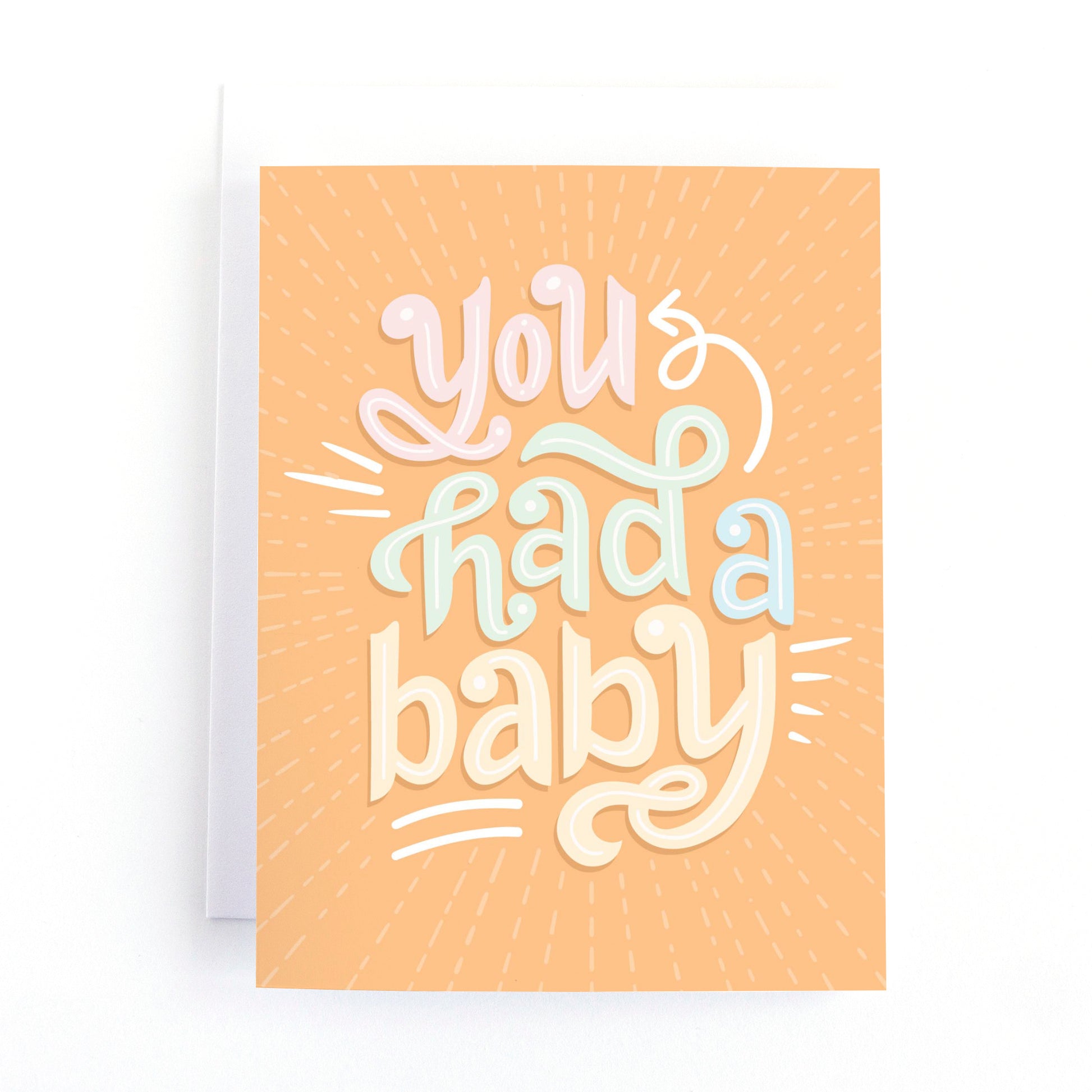 Hooray, there's a bundle of joy! Our New Baby Card in retro lettering celebrates the arrival of the new addition to the family. This playful, gender-neutral card is perfect for baby showers or welcoming the little one into the world. Share the excitement with this adorable card that highlights the joyous occasion. Its fun and cheerful design radiates happiness and warmth, celebrating the arrival of the new family member. Whether it's a boy, girl, or a surprise, this card adds a delightful touch to congratulate the proud parents on their new adventure!